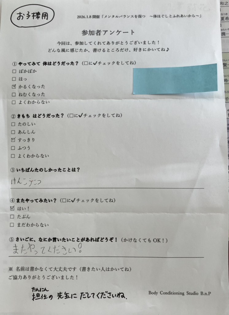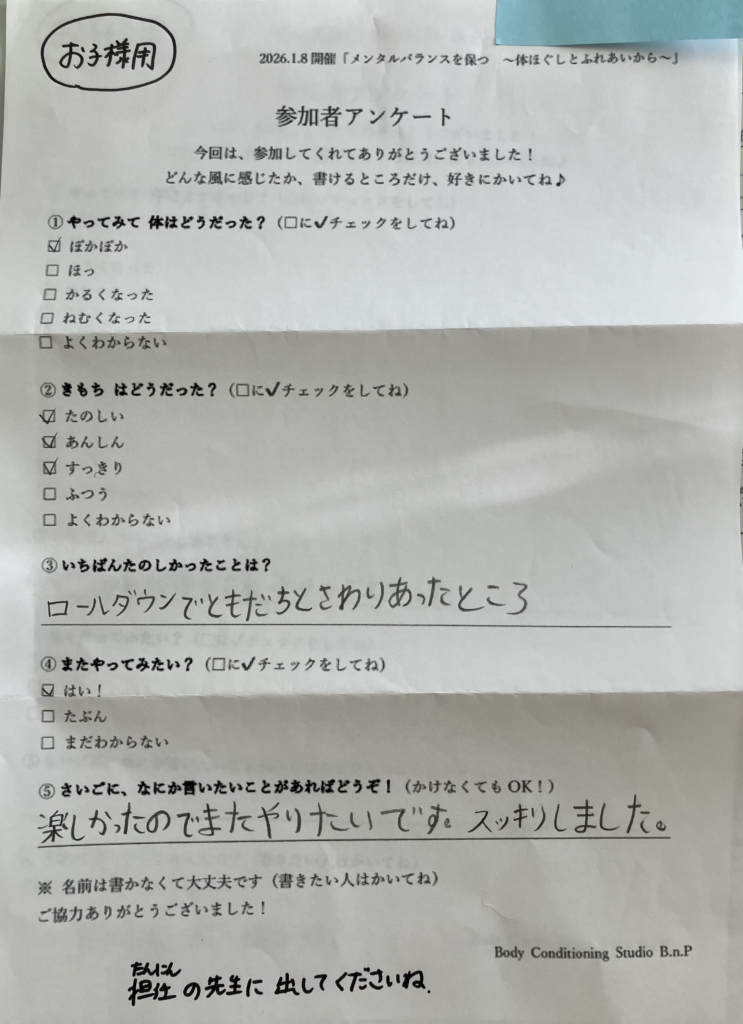 「体を通して心が落ち着く感覚を知ることができました」